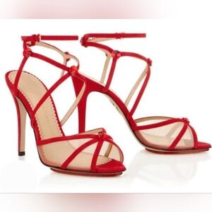 Charlotte Olympia heeled sandals 8.5 scarlet red suede Isadora mesh Made Italy luxury party red carper prom wedding guest event