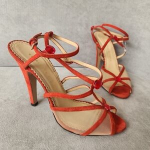 Charlotte Olympia heeled sandals 8.5 scarlet red suede Isadora mesh Made Italy