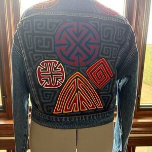 Unique denim jacket with colorful authentic Panamanian molahs.Women's sz M-L. New condition
