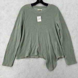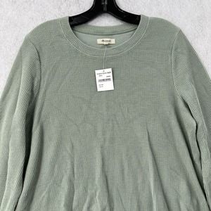 Madewell Rib Knit Top Womens XL Green Thermal Ribbed Asymmetrical Long Sleeve