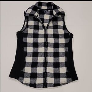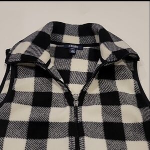 Chaps Fleece Buffalo Plaid High Zipper Neck Vest Black White Small