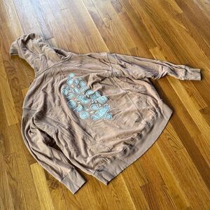 So comfy, oversized hoodie featured in a zip-front design and slouchy silhouette with patchwork stitching and embroidered buti logo detailing at the back. **Fit:** Slouchy, oversized fit; designed to hit below the hips **Features:** Soft fabrication, two-way zipper closure, hooded neckline with adjustable drawstrings, pockets for hands, patchwork stitching, ribbed knit cuffs with thumbholes, banded bottom hem, oversized logo at back **Why We All Your Love Logo Hoodie by FP Movement in Mocha Latte,