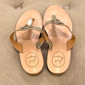 Jack Roger gold metallic leather thong sandals with shiny gold medallion and 1 inch wedge heel. Smoke free environment. Like new condition.