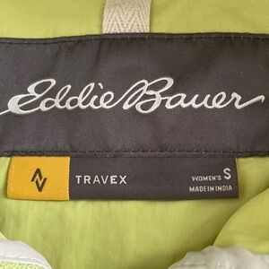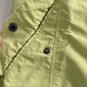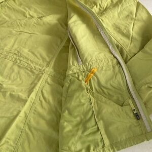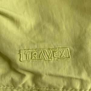 Vibrant lime green Travex windbreaker. Features a full zip front and high collar. Ideal for outdoor adventures.
