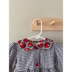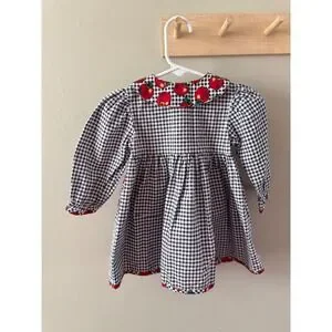 Vintage black and white gingham dress with the sweetest apple accents on the collar, sleeves and pockets! This would be cute for daycare pictures.