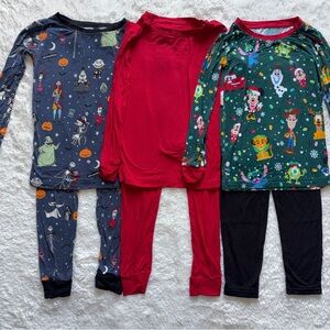 Three Disney Little Sleepies Unisex Boys Girls 4T Long Sleeve Pants Pajama Sets Glow Halloween Christmas Red Bamboo Bundle Lot