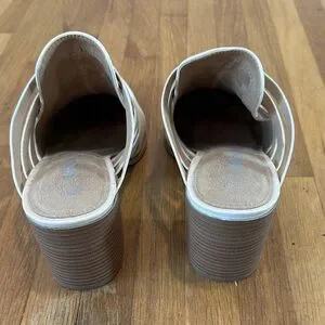 Sonoma | Women’s chic cream mules with strappy design. Ideal for versatile styling. Comfortable and stylish. Little scuffs and marks. Great used condition!