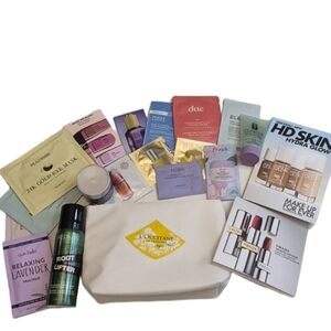 This is a bundle of various Makeup, skincare and hair products, inside a cute Makeup bag.