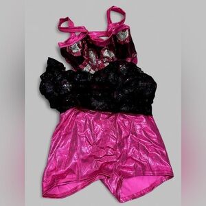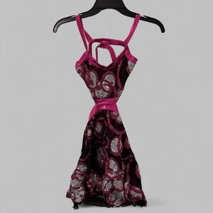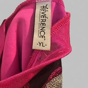 dance wear, solo, costume, jazz, ballroom, pink sequins, silver accents, open back, two-piece, fitted, performance costume, dancewear, youth large, glamorous, stage-ready
