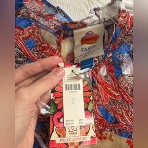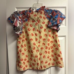 NWT Farm Rio Anthropologie Ruffle Sleeve Printed Blouse Size Large