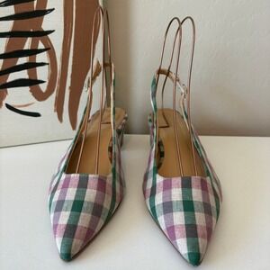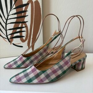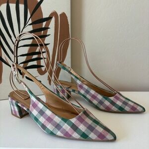 Anthropologie Gingham Slingback Block Heels Green Purple Size 38