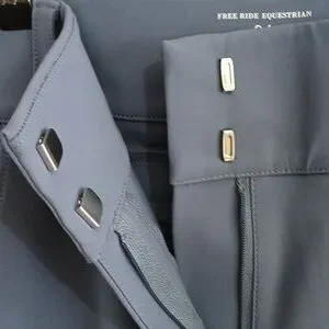Free Ride Equestrian riding breeches. Size 34. Ocean blue with silvertone hardware. Inner leg grippers. Measures (flat): 16" across waist, 28 1%2" inseam, 39" overall length.