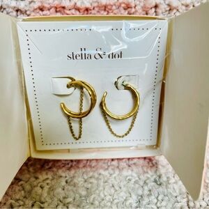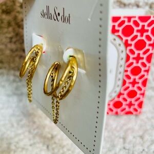 Stella & Dot Dainty Illusive Hoops Muted Gold Hammered Chain Accented Earrings