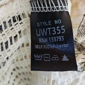 Material: 100% polyester body with various mixed materials like lace and textured knit panels