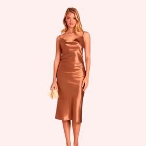 Chic copper midi dress with a sleek silhouette. Perfect for elegant occasions.