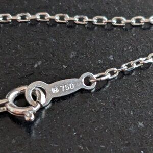 Hallmark 750 (indicating 18K gold) and the M in shell outline (MIKIMOTO Logo)