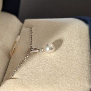 Akoya Cultured Pearl and Diamond Pendant – 18K White Gold