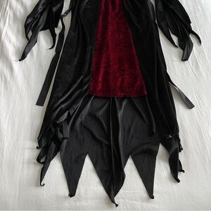 Dress your little one in this spooky vampire costume, featuring a striking black and red design. Perfect for Halloween, ages 8-14.