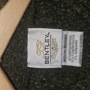 This dark green crew neck sweater features a heathered texture with flecks of lighter green, offering a cozy and stylish look. The fine knit and soft fabric make it a comfortable choice for any occasion. Its long sleeves and longer length provide warmth and a relaxed fit.