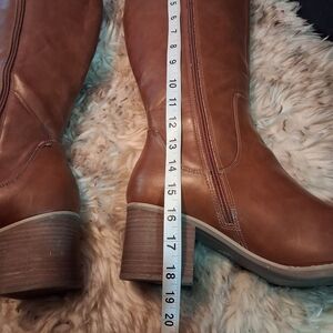 Chic tan heeled boots from Target. Sleek design with a comfortable fit. Ideal for versatile styling.