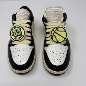 Includes original box and removable "85 / basketball -Big Jordan Fall League" lace patches. Clean leather uppers, classic Air Jordan 1, low silhouette. Smoke-free home, fast shipping. Women's size 6.5 (EUR 37.5).