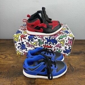 Nike Air Jordan 1 TD Banned Royal Blue 640735-074 CW1589-001 Bundle Kids Sz 10C.