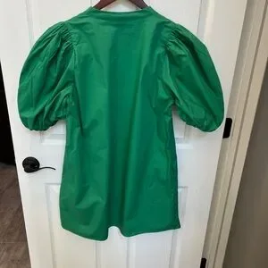 Nicole Miller Vibrant Green Puff Sleeve Mini Dress Size L LIKE NEW
