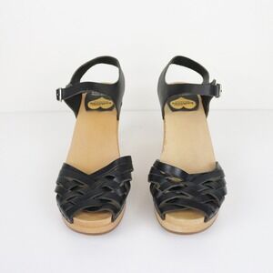Swedish Hasbeens Braided Sky High Clog Sandals in Black Leather. Size Womens 41, US 11.