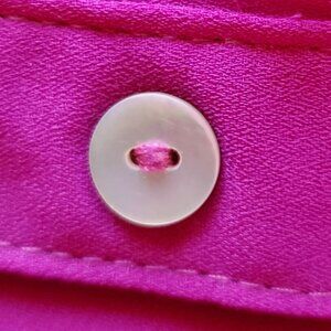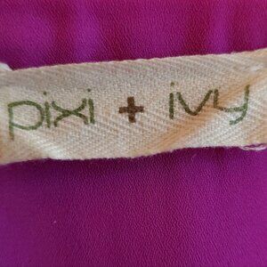 Pixi + Ivy button-down vibrant purple blouse. It offers a stylish and comfortable fit. Versatile comfortable style. Useful as layers as well, like light cardigan over the tank top. 100% polyester fabric. Two pockets in the front. Pearl buttons. Small, elegant cuffs with button closure. Curved hem. Hand wash in cold water. Pre-owned, perfect condition. Shoulder-to-Shoulder 16 in, Pit-to-Pit around 40 in, Sleeves 24 in, Length 27 in.