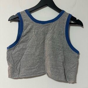 Gray crop top with blue trim. Official NBA product. NETS" wordmark in blue with blue trim. reworked (cut) item from the era when the team was located in New Jersey, prior to their move to Brooklyn. Vintage size M