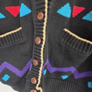 Benefits Charity! Vintage Elizabeth Liz Claiborne Aztec Western Black Cardigan Sweater L/XL Petite Pre-owned Chest Measurement is 26" Length is 27"