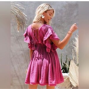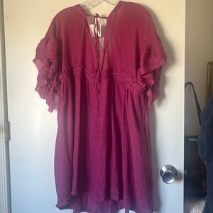 🚨 🥷 Ruffled Button-Down gauzy swim coverup dress in magenta w cute pockets