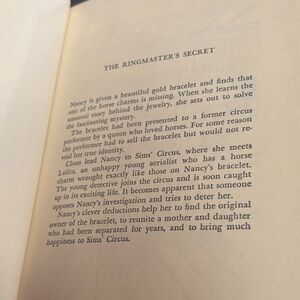 Discover the thrilling mystery in 'The Ringmaster's Secret' by Carolyn Keene. This hardcover edition features a captivating cover with shades of black, brown, and pink. Perfect for fans of the Nancy Drew series.
