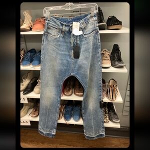 Nwt R13 Izzy Drop In Jasper Color Dropped Crotch Stylish Blue Women's Jeans