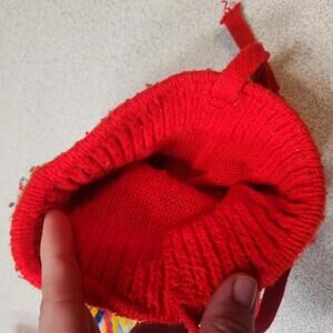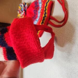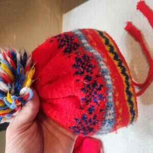 Pair of Vintage Kids Red Knit Winter Hats with Pom Poms