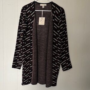 Stylish open-front cardigan featuring a striking pattern. Perfect for adding a touch of elegance to any outfit.