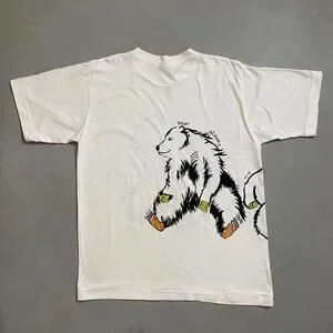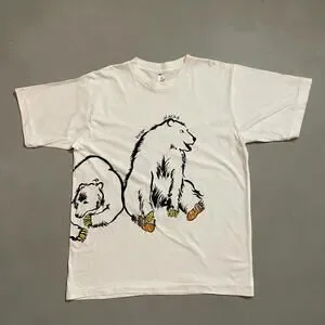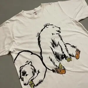 A very cool vintage graphic tee featuring a wrap-around design of a polar bear. It has an oversized fit and is made from very soft cotton, feeling high-quality.