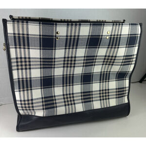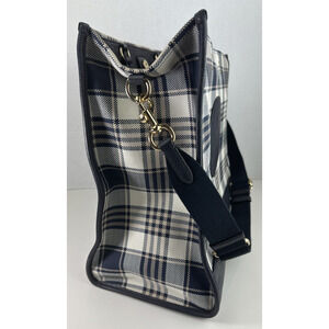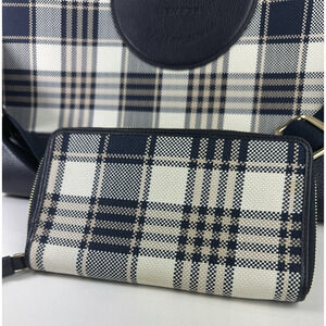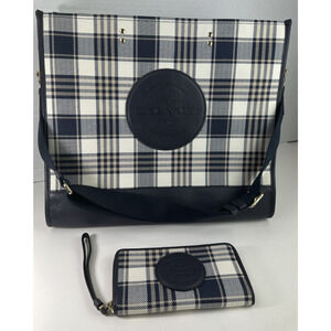 Coach Dempsey Garden Plaid Large Tote Bag W/ Matching Wallet in Navy Blue EUC