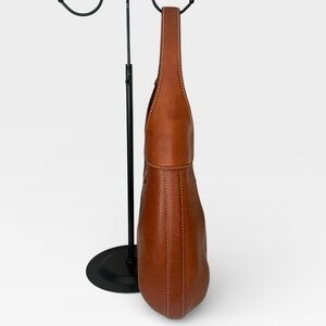 Authentic Dooney & Bourke Florentine Toscana Front Stitch Hobo in rich ginger caramel vachetta leather. This premium Toscana design features the signature curved front stitch detailing, smooth unbranded exterior, and luxurious cream leather-lined interior. Crafted from thick Florentine leather that develops a beautiful natural patina over time.