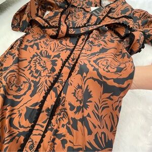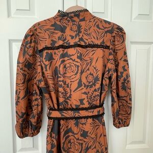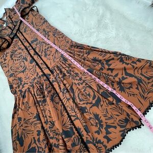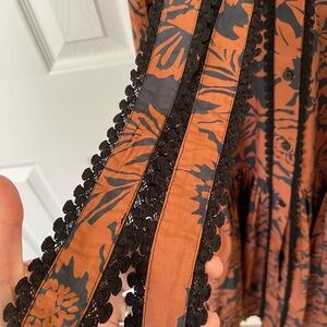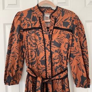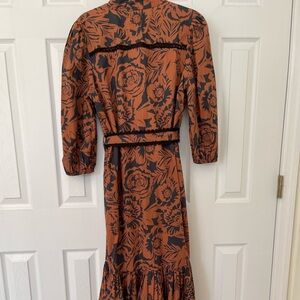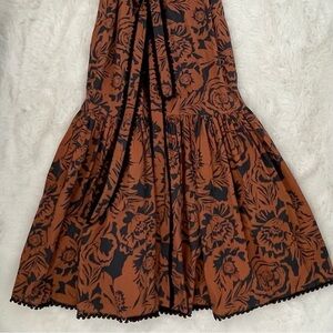 Beautiful burnt orange and black floral long dress from Anthropologie