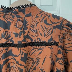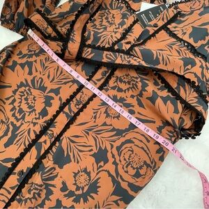 NWT Avec Les Filles Black & Rust Cotton Poplin Floral Belted Maxi Dress
