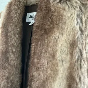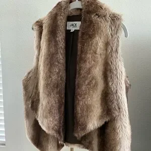 Soft and stylish faux fur vest by Jack. Features a warm, natural hue. Ideal for chic layering.