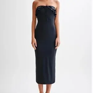 Meshki Bea Strapless Slinky Ruffle Midi Dress