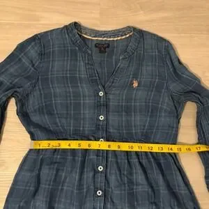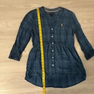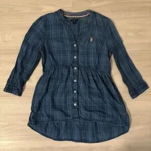 U.S. Polo Assn. Plaid Tunic Shirt Women Blue Button Down Long Sleeve Size Medium