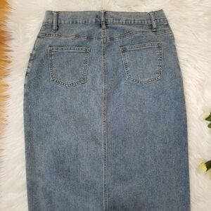 SINCERELY JULES Stretch Denim Blue Skirt, Size 9 /28, Open Front, I only wore this once, I need a smaller one, it's super cute, the measurements are in the Photos, Make me an Offer!!! Elevate your wardrobe with this classic blue denim skirt. Perfect for any casual outing.