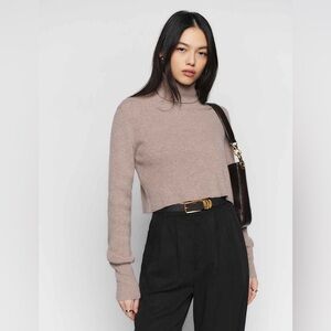 Reformation Cashmere Luis cropped Cozy Tan Turtleneck Sweater XS
