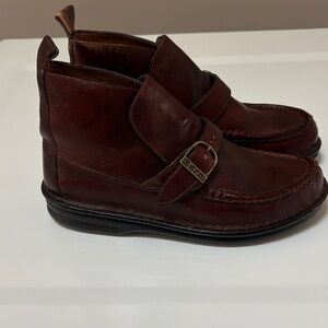 Elegant dark brown leather loafers. Features a stylish buckle detail. Perfect for casual or formal wear.