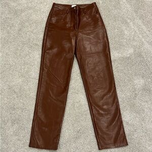 Aritzia Wilfred The Melina Faux Leather Straight Leg Pants | Cognac Brown size 8