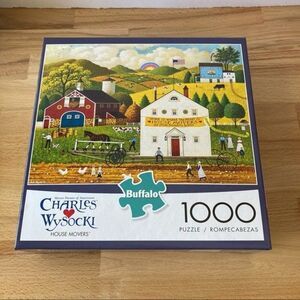 Charles Wysocki House Movers 1000 Piece Jigsaw Puzzle - Every Buffalo Games jigsaw puzzle is manufactured in the U.S.A. from recycled puzzle board. A precision cutting technique guarantees that every piece will fit soundly with the company's signature Perfect Snap™. A bonus puzzle poster is also included so that you have a handy reference of what the completed puzzle should look like while you put yours together.