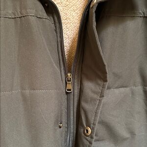 Stay warm and stylish with this dark khaki green puffer vest. Perfect for layering in cooler weather.